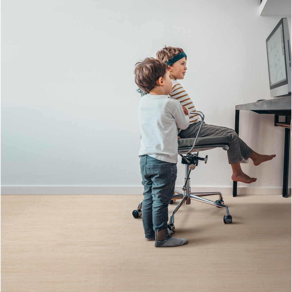 The unmistakable character of travertine marble is captured in the PORCELAIN TILE - Calares Rectified beige in 23.6x23.6 in format. The typical grooves of the stone, combined with a background of tan and cream colors, define this piece of timeless and classic beauty. Calares beige has 3 different faces, enhancing its realism and natural appeal with its matte finish. It is also ultra-resistant to shocks, scratches, stains and moisture, making it ideal for moderate commercial use.